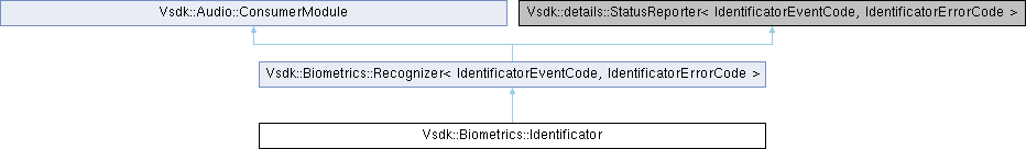 Public Member Functions inherited from Vsdk::Biometrics::Recognizer< IdentificatorEventCode, IdentificatorErrorCode > | |